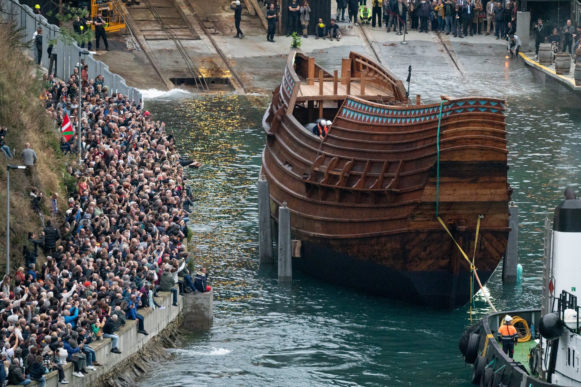 7 listopada 2025 roku był kamieniem milowym ambitnego przedsięwzięcia – uroczystym momentem dla wszystkich zaangażowanych. Popołudniowemu wodowaniu przypatrywały się tłumy. Baskijski premier Lehendakari Imanol Pradales powiedział, że „San Juan symbolizuje to, kim byliśmy, kim jesteśmy i kim chcemy pozostać”. Po zejściu na wodę, statek został przeholowany do nabrzeża, przy którym odbędą się prace wykończeniowe – wyposażenie wnętrz, montaż masztów i takielunku. Wiosną 2026 roku żaglowiec ma zostać otwarty dla zwiedzających, a w kolejnym roku planowany jest transatlantycki rejs do Kanady, tropem oryginału. San Juan będzie miał 28 metrów długości całkowitej, a wysokość jego masztów ma osiągnąć 30 metrów.